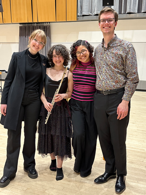 Lexi is a member of two nationally known chamber groups: FLYDLPHN (www.flydlphn.com) and Trío Líneas (linktr.ee/triolineas). With FLYDLPHN sextet, Alexis has commissioned and premiered over 15 pieces. The sextet has held residencies at Bowling Green State University and Washtenaw Community College, with an upcoming residency at the University of Florida in spring of 2026. Her trio, Trío Líneas, has performed around the country, including Hill Auditorium in Ann Arbor, MI, Tenri Cultural Institute in Manhattan, New York, Prairiewood Retreat in Manhattan, Kansas, and the Butler School of Music in Austin, Texas. Trío Líneas was one of the 10 groups chosen to compete in the 2025 Coltman Competition.
